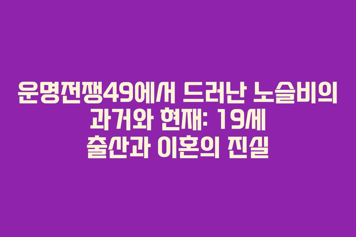 노슬비는 최근 디즈니+ 예능 프로그램인 ‘운명전쟁49’에서 그동안의 경험을 바탕으로 강한 존재감을 드러냈습니다. 이로 인해 그의 과거 고백이 다시금 주목받고 있습니다. 2026년 2월 13일 기준으로, 노슬비는 19세에 출산 후 이혼이라는 힘든 과정을 겪었으며, 이제 홀로 양육 중이라는 사실이 다시 재조명되었습니다. 이런 상황 속에서 그가 어떻게 현재의 위치에 이르게 되었는지 살펴보겠습니다.