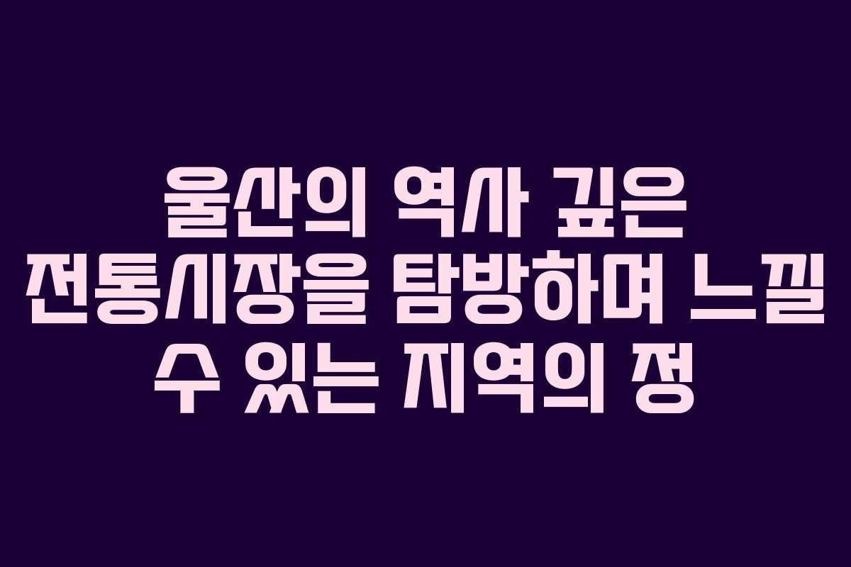 이 외에도 울산의 전통시장은 다양한 매력을 지니고 있습니다. 지역 주민들의 삶을 엿볼 수 있는 기회이기도 하며, 맛있는 먹거리를 통해 특별한 경험을 제공합니다. 울산을 방문하는 이들에게 전통시장은 꼭 가봐야 할 장소로 추천할 수 있습니다.