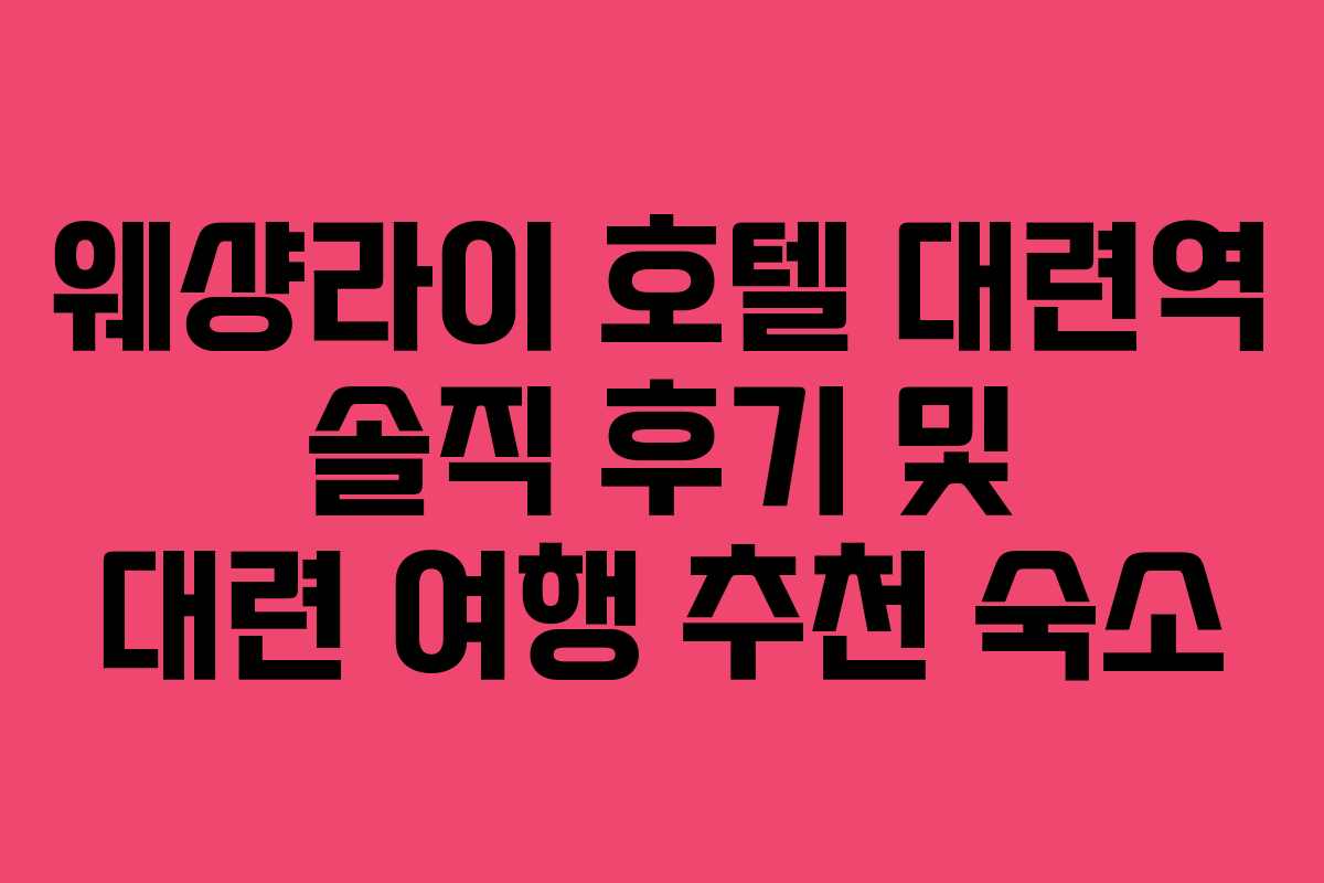 웨샹라이 호텔은 대련역 인근에서 여행의 시작을 책임지는 매력적인 선택입니다. 대련 여행을 계획하고 있다면 이 호텔의 장단점을 충분히 고려해야 합니다. 이 글에서는 웨샹라이 호텔의 위치, 시설, 가격 대비 만족도, 그리고 주위 환경에 대한 정보까지 꼼꼼히 분석하여 여러분의 선택에 도움이 될 수 있도록 하겠습니다.