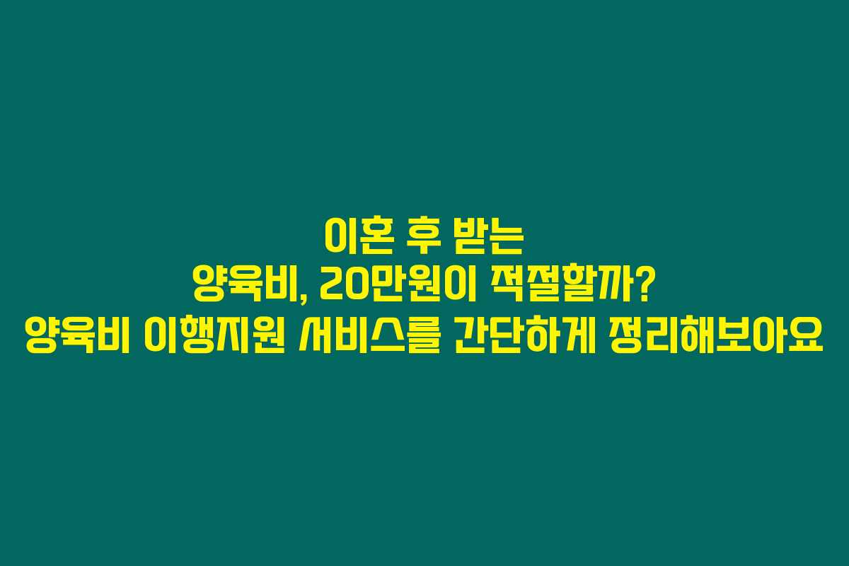 제가 직접 알아본 바로는, 이혼 후 양육비 문제는 많은 분들이 고민하는 주제입니다. 특히나 자녀가 있는 경우에는 더욱더 심각하게 다가오죠. 그렇지만 다행히도 정부의 도움을 받을 수 있는 양육비 이행지원 서비스라는 제도가 있어요. 아래를 읽어보시면 이 제도를 통해 어떻게 20만원씩 지원받을 수 있는지, 그리고 그 조건에 대해 자세히 알아보실 수 있습니다.