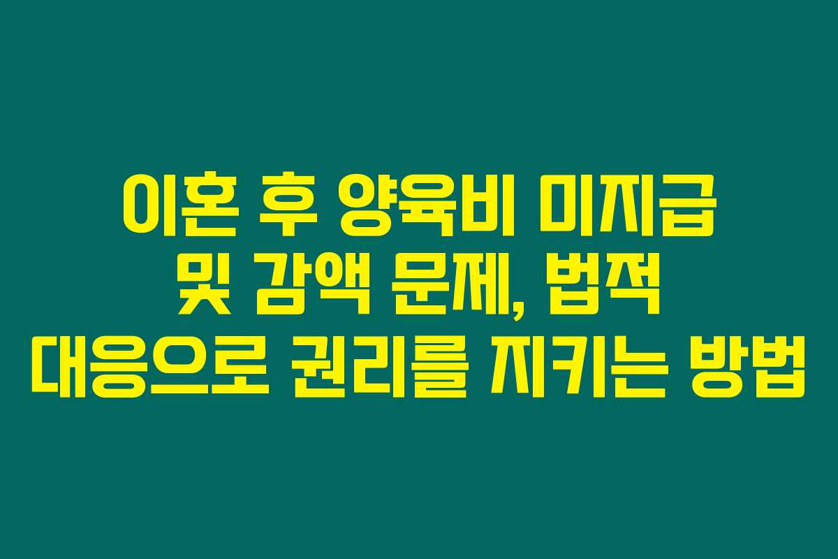 제가 직접 경험해본 결과로는, 이혼 후에 양육비 문제는 생각보다 많은 이들에게 심각한 고민거리가 됩니다. 양육비는 자녀의 삶에 필수적인 요소임에도 불구하고, 실제로 지급되지 않거나 감액이 이루어지는 경우가 많지요. 아래를 읽어보시면, 양육비 미지급 및 감액 문제에 대한 법적 대응 방법과 권리 보호에 관한 정보를 자세히 확인할 수 있습니다.