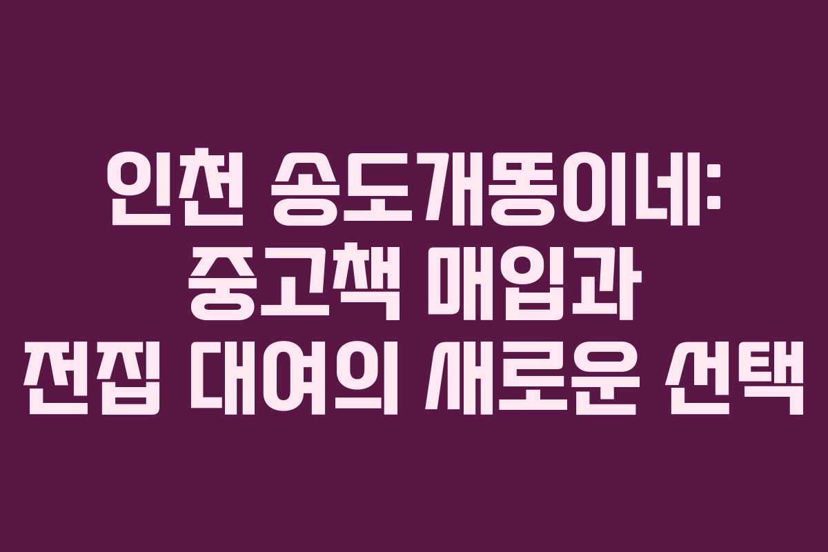 인천 송도개똥이네는 중고책 매입과 전집 대여를 제공하는 공간으로, 책을 사랑하는 이들에게 새로운 기회를 제공합니다. 이곳은 특히 어린이 도서관처럼 아늑한 분위기로, 책을 교환하거나 대여하는 경험을 더욱 즐겁게 만들어 줍니다.