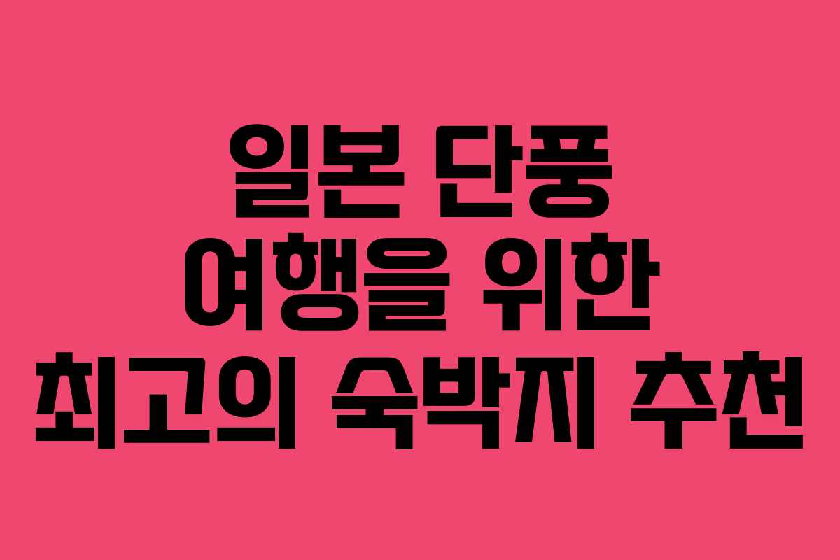 가을철 일본은 단풍으로 물들어 환상적인 풍경을 자랑합니다. 이 아름다운 자연을 만끽하기 위해서는 적절한 숙박지가 필수적입니다. 이번 글에서는 일본의 대표적인 단풍 명소와 그 주변의 추천 숙박지에 대해 알아보겠습니다.