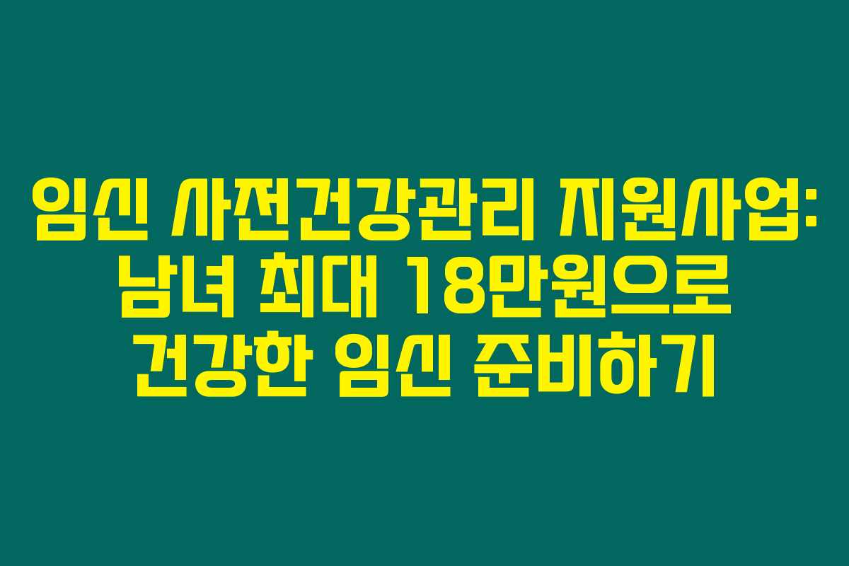제가 직접 알아본 바로는, 2024년 4월부터 시행되는 ‘임신 사전건강관리 지원사업’은 임신을 준비하는 부부에게 큰 도움이 되는 프로그램이에요. 이 사업은 임신 전 건강 검진을 통해 모든 위험 요인을 미리 파악하고 예방하는 데에 중점을 두고 있으며, 남성과 여성 모두에게 최대 18만원의 지원이 제공됩니다. 아래를 읽어보시면 이 지원사업의 신청 방법과 함께 임신 준비를 위한 가치 있는 정보들을 확인할 수 있습니다.