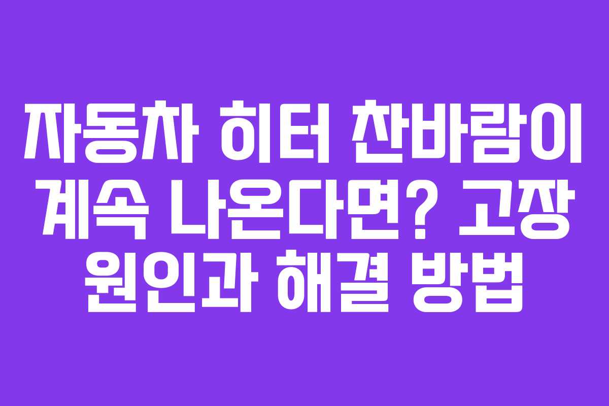 겨울철, 자동차 히터에서 따뜻한 바람이 나오지 않고 찬바람만 나오는 증상은 매우 당황스러운 상황입니다. 이러한 문제를 해결하기 위해선 히터 작동 원리와 고장 원인을 이해하는 것이 중요합니다.