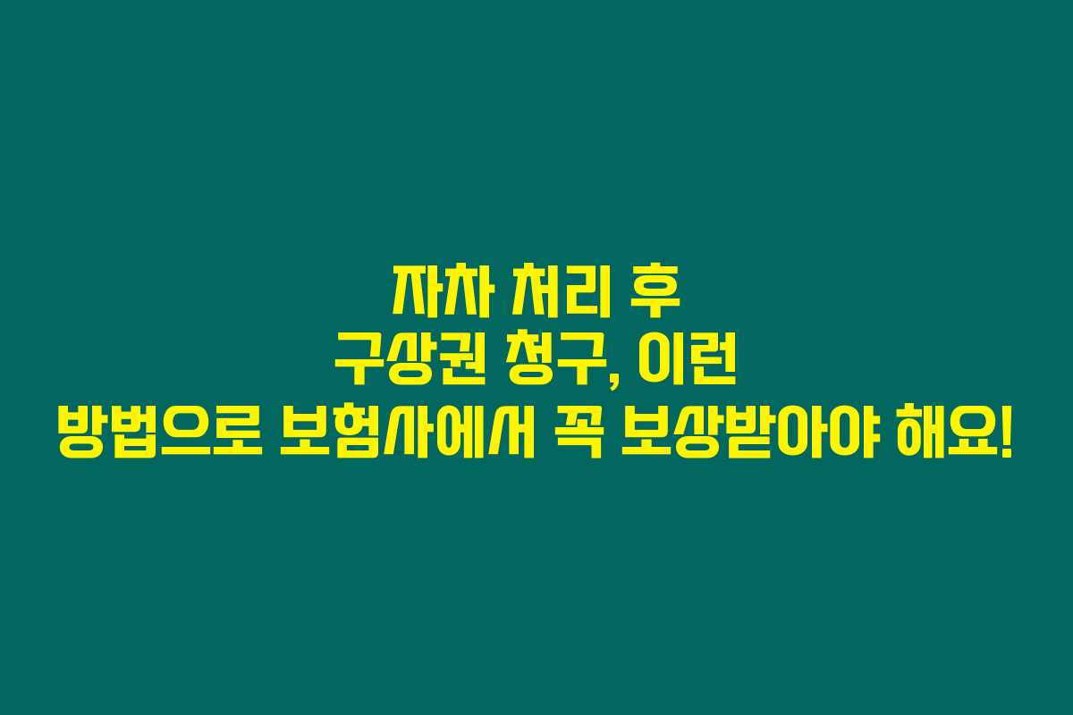 이제 자차 처리 후 구상권 청구는 여러분이 제대로 대처해야 할 부분이 많죠? 이런 세세한 부분들까지 놓치지 않고 준비하셔야 보험사에서 보상받는 길이 열릴 거예요. 교통사고는 누구에게나 일어날 수 있는 문제이니, 미리 준비해두면 좋겠죠? 😊