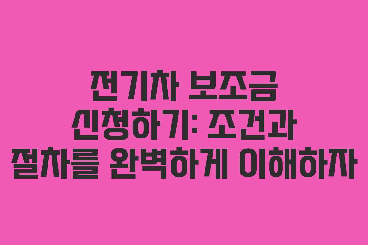 전기차 보조금을 신청하기 위해서는 몇 가지 조건을 충족해야 합니다. 2025년 기준으로 다음과 같은 주요 조건이 있습니다.