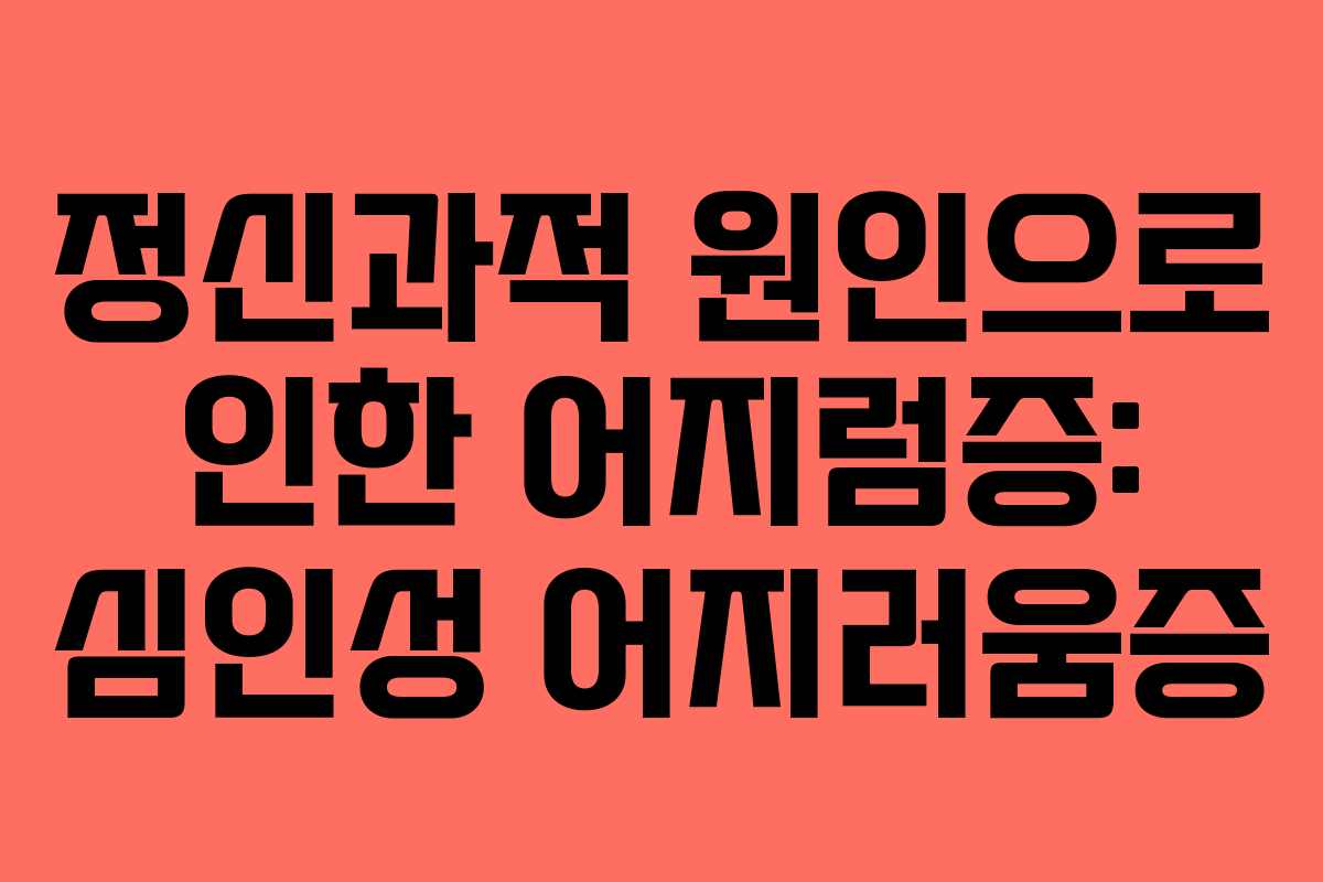 어지럼증은 많은 사람들이 겪는 흔한 증상으로, 다양한 원인에 의해 발생합니다. 특히 신경계의 전정계 기능장애가 주요 원인 중 하나로 알려져 있습니다. 하지만 신경학적 검사 결과에는 이상이 없으면서도 어지러움을 호소하는 환자들이 많습니다. 이러한 경우, 정신과적 요인이 중요한 역할을 할 수 있습니다. 이번 글에서는 정신과적 문제로 인해 발생하는 어지럼증, 즉 심인성 어지러움증에 대해 알아보겠습니다.