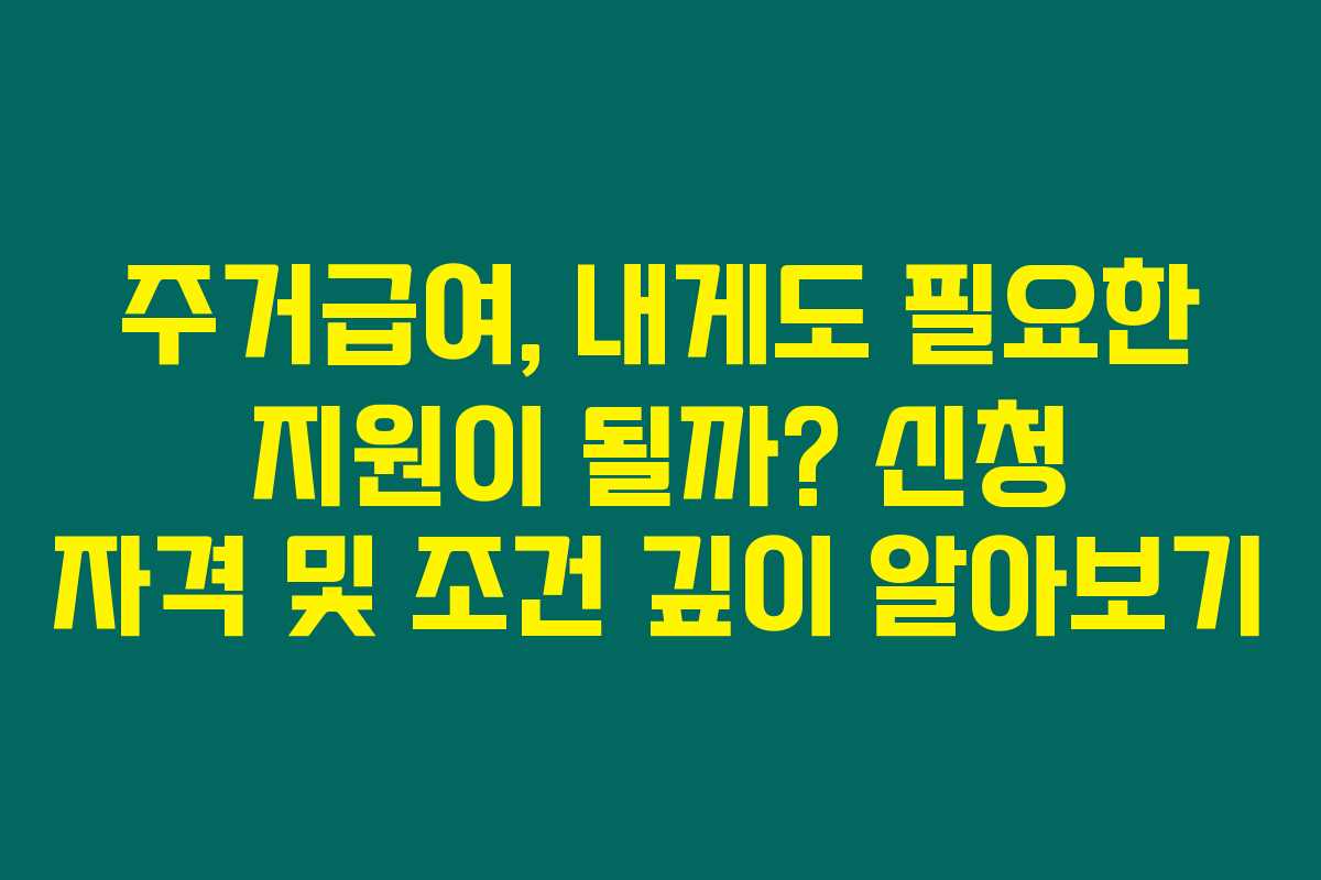 주거급여를 신청하기 위해서는 몇 가지 기본 요건이 있어요. 제가 알아본 바로는 아래의 조건을 충족해야 지원이 가능하답니다.