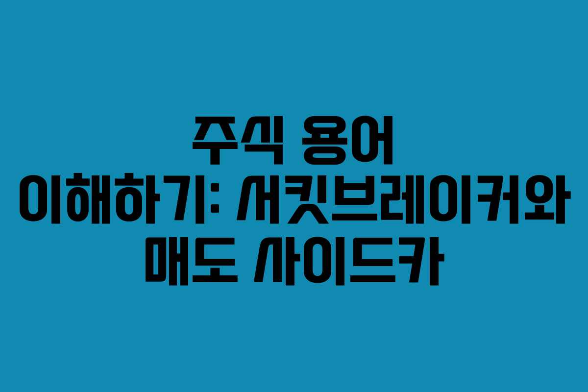 주식 투자에 있어 필수적인 용어인 서킷브레이커와 매도 사이드카를 이해하는 것은 매우 중요하다. 이 두 가지 개념은 주식 시장의 불안정성과 관련이 깊으며, 투자자에게는 필수적인 지식이라 할 수 있다. 본 글에서는 이 두 가지 용어에 대해 간단하고 명확하게 설명하고, 각각의 기능과 의의를 살펴보겠다.