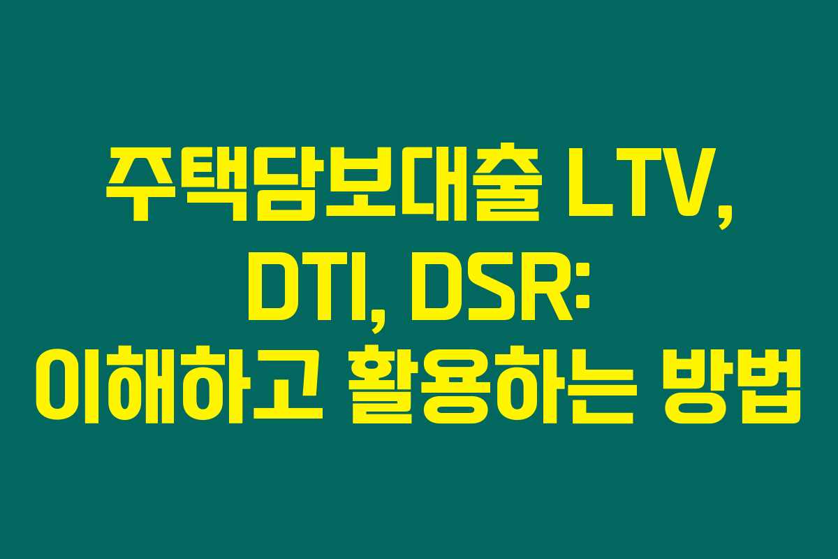 LTV는 담보대출 비율을, DTI는 소득 대비 부채 상환 능력을, DSR은 모든 대출의 원리금 상환비율을 나타냅니다.