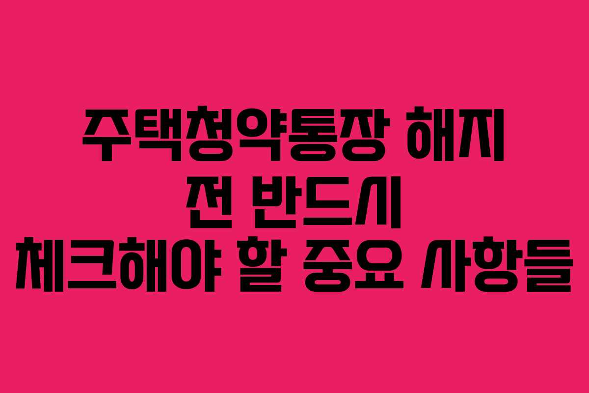 주택청약통장을 해지하기 전에 위의 사항들을 충분히 고려하고, 신중하게 결정하는 것이 중요하다.