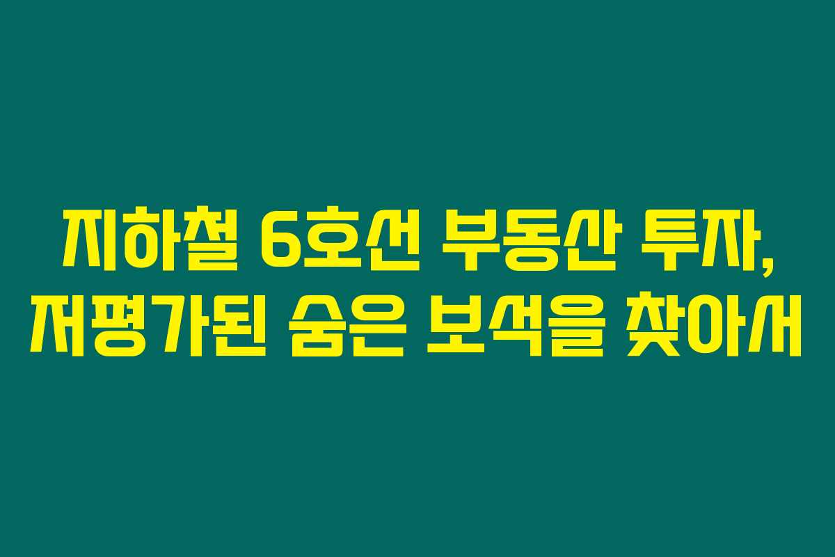 지하철 6호선 부동산 투자에 대해 유의해야 할 점과 전략을 정리해 보았습니다.