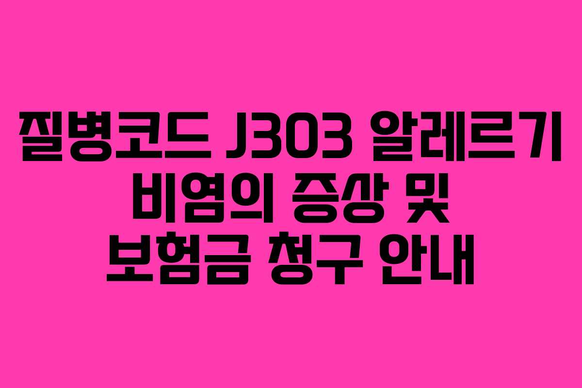 알레르기 비염은 사람들에게 흔히 발생하는 질환으로, 특히 계절 변화에 따라 그 증상이 더욱 두드러지곤 합니다. 질병코드 J303에 해당하는 이 질병은 다양한 증상을 동반하며, 보험금 청구 가능 여부에 대한 정보도 중요합니다. 이번 글에서는 J303 알레르기 비염의 주요 증상과 보험금 청구에 대한 내용을 살펴보겠습니다.