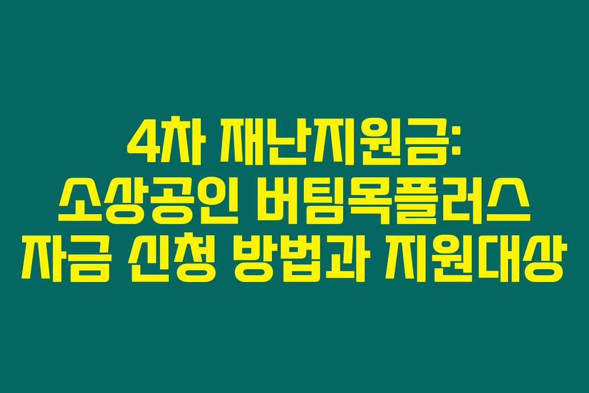 제가 알아본 바로는, 4차 재난지원금으로 소상공인에게 지원되는 버팀목플러스 자금의 신청 방법 및 지원 대상이 중요한 정보로 떠오르고 있습니다. 코로나19가 장기화됨에 따라 많은 소상공인들이 어려움을 겪고 있기 때문에, 정부의 지원 정책을 충분히 이해하고 활용하는 것이 중요하답니다. 아래를 읽어보시면 소상공인 버팀목플러스 자금의 핵심 정보와 신청 방법을 자세히 알아볼 수 있습니다.
