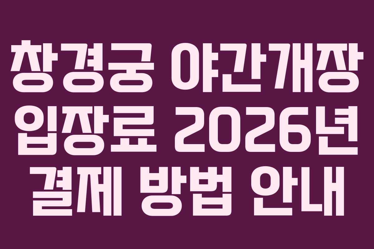 창경궁 야간개장 입장료 2026년 결제 방법 안내