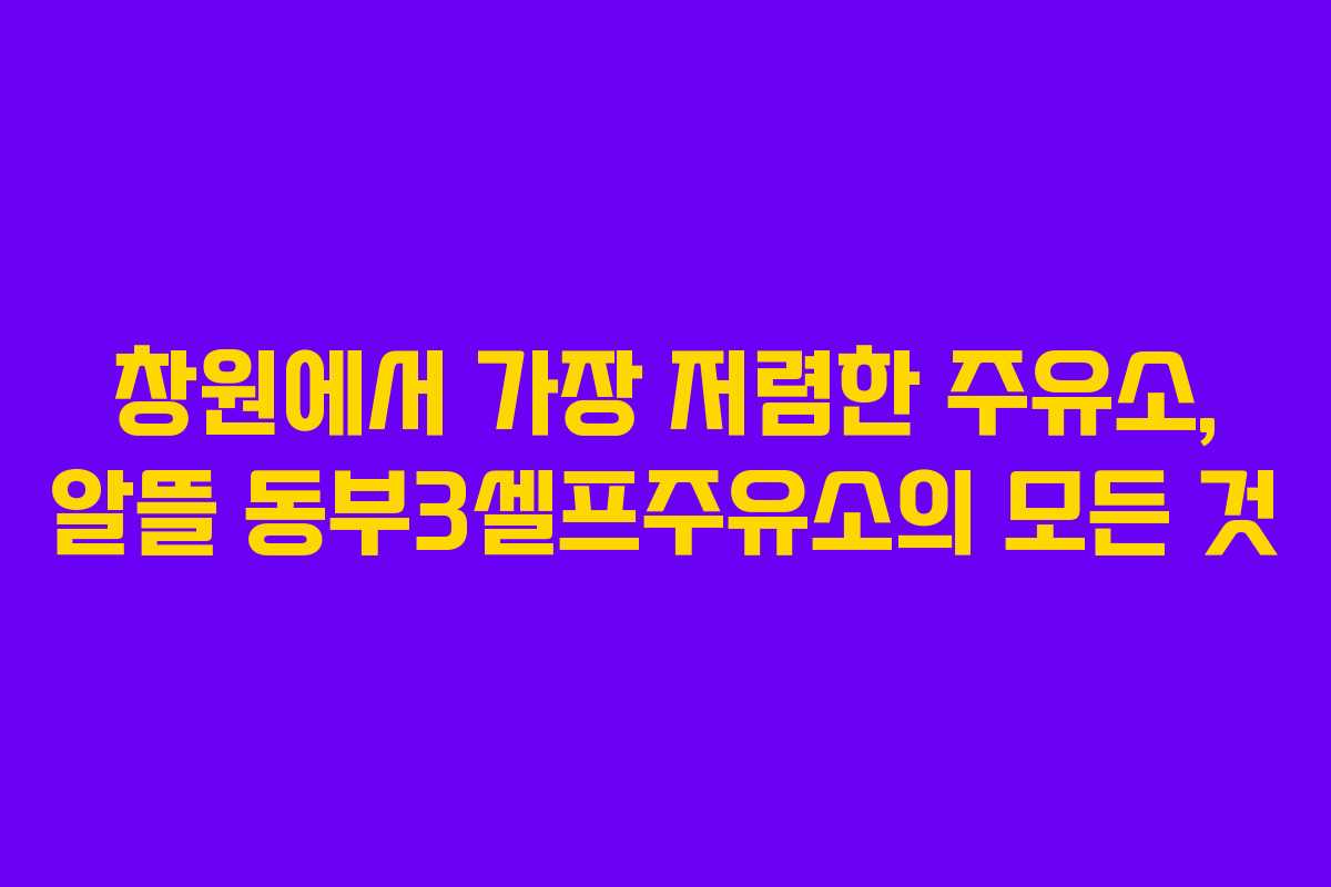 창원에서 가장 저렴한 주유소, 알뜰 동부3셀프주유소의 모든 것