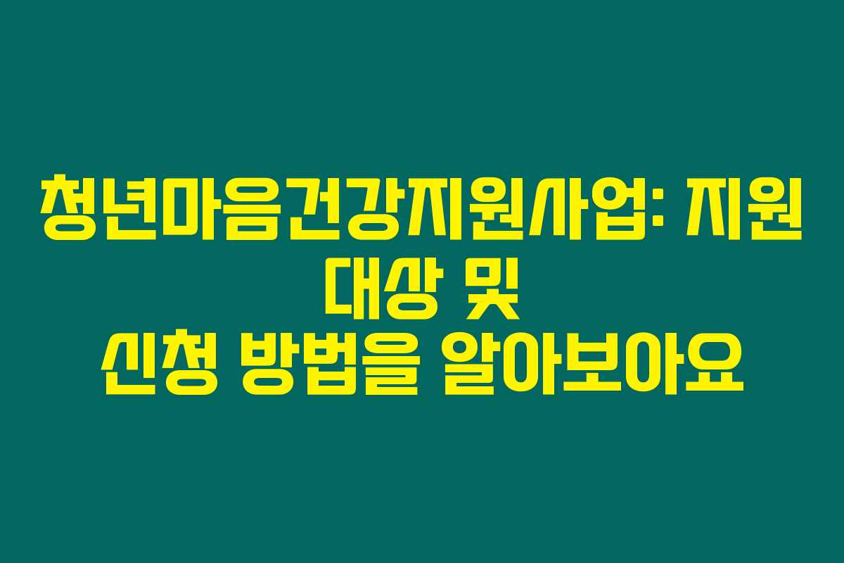 청년마음건강지원사업: 지원 대상 및 신청 방법을 알아보아요
