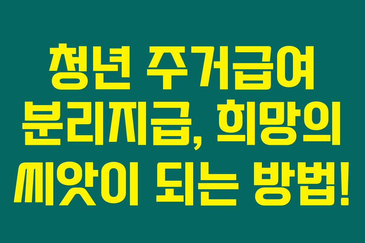 청년 주거급여 분리지급, 희망의 씨앗이 되는 방법!