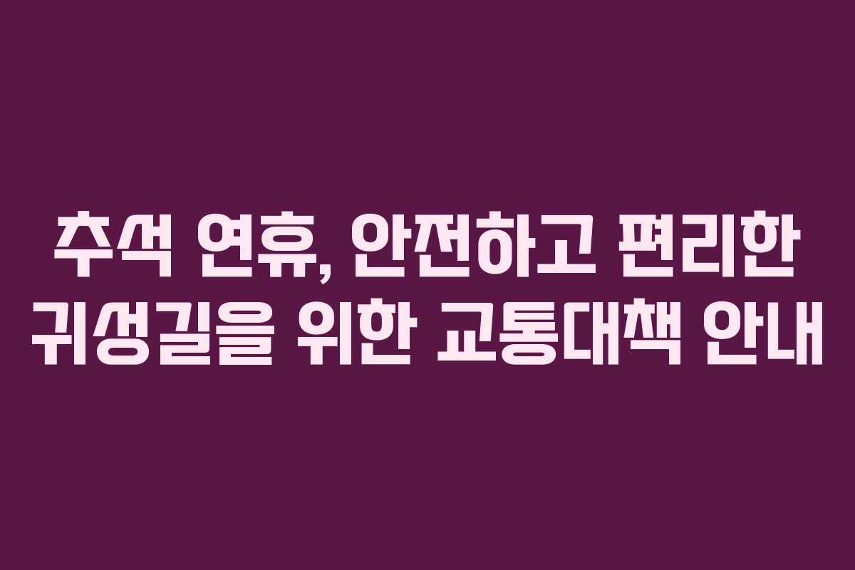 추석 연휴 동안 안전하고 편리하게 고향을 방문하기 위한 교통대책이 마련되어 있다. 이번 대책은 교통사고를 줄이고 코로나19 확산을 방지하기 위하여 여러 측면에서 강화된 점이 특징이다. 연휴 기간 동안의 이동 계획을 세우고 교통 정보에 주의를 기울이는 것이 중요하다.