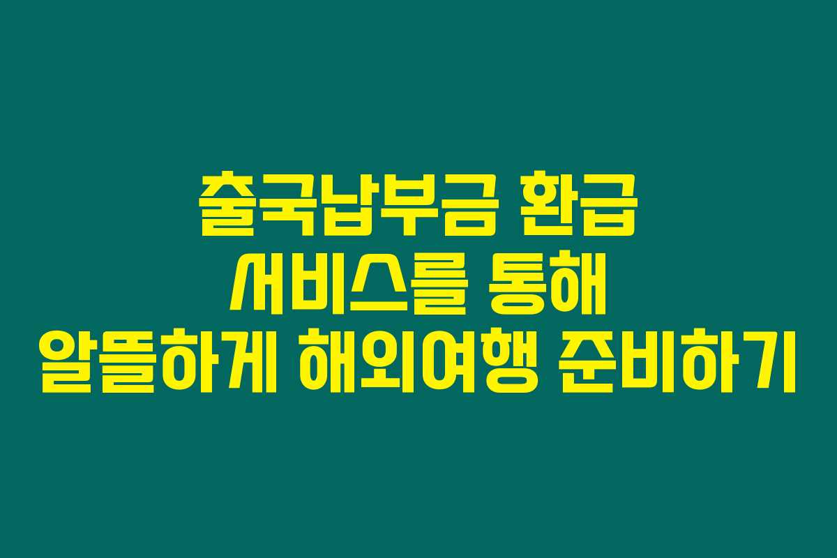 출국납부금 환급 서비스는 해외여행을 떠나는 모든 여행객들에게 꼭 필수적으로 알아야 할 서비스입니다. 제가 경험한 결과로는, 이 서비스를 통해 환급금을 받는 것이 여행 비용을 줄이는 데 큰 효과가 된답니다. 지금 바로 해당 사이트를 확인하고 소중한 환급금을 챙겨보세요!