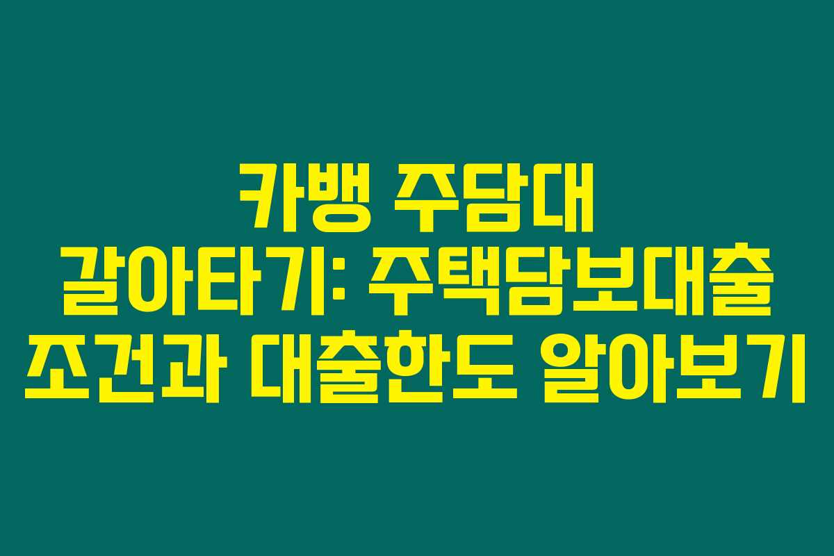 제가 직접 리서치한 바로는, 카카오뱅크의 ‘주담대 갈아타기’ 서비스는 많은 분들이 혜택을 누릴 수 있는 기회를 제공합니다. 주택담보대출을 고려하고 있는 분들에게 필요한 정보와 조건을 잘 정리해보았습니다. 아래를 읽어보시면, 카카오뱅크의 주택담보대출에 대한 전반적인 이해를 돕고, 필요한 조건과 대출 한도를 확인할 수 있습니다.