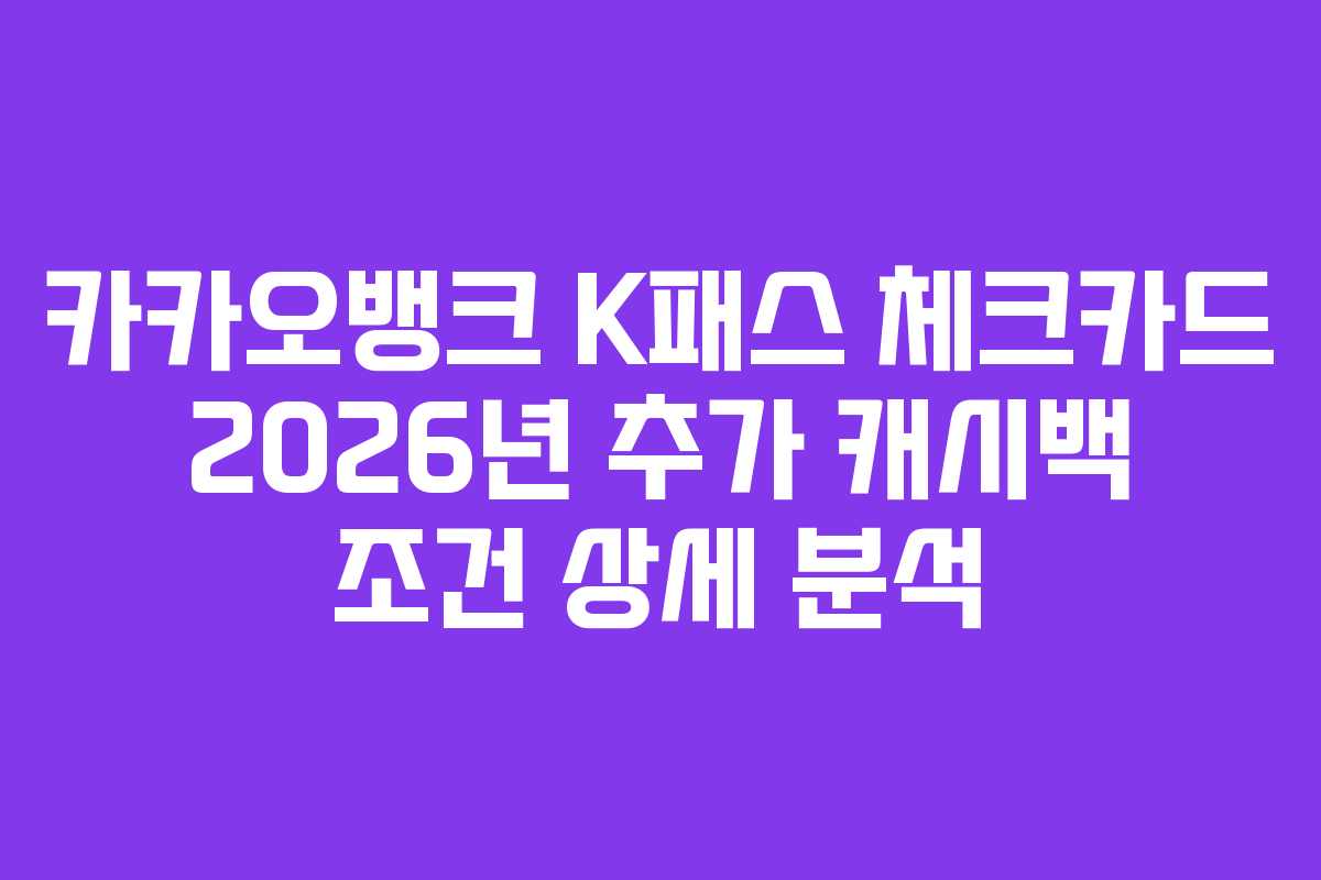 카카오뱅크 K패스 체크카드 2026년 추가 캐시백 조건 상세 분석