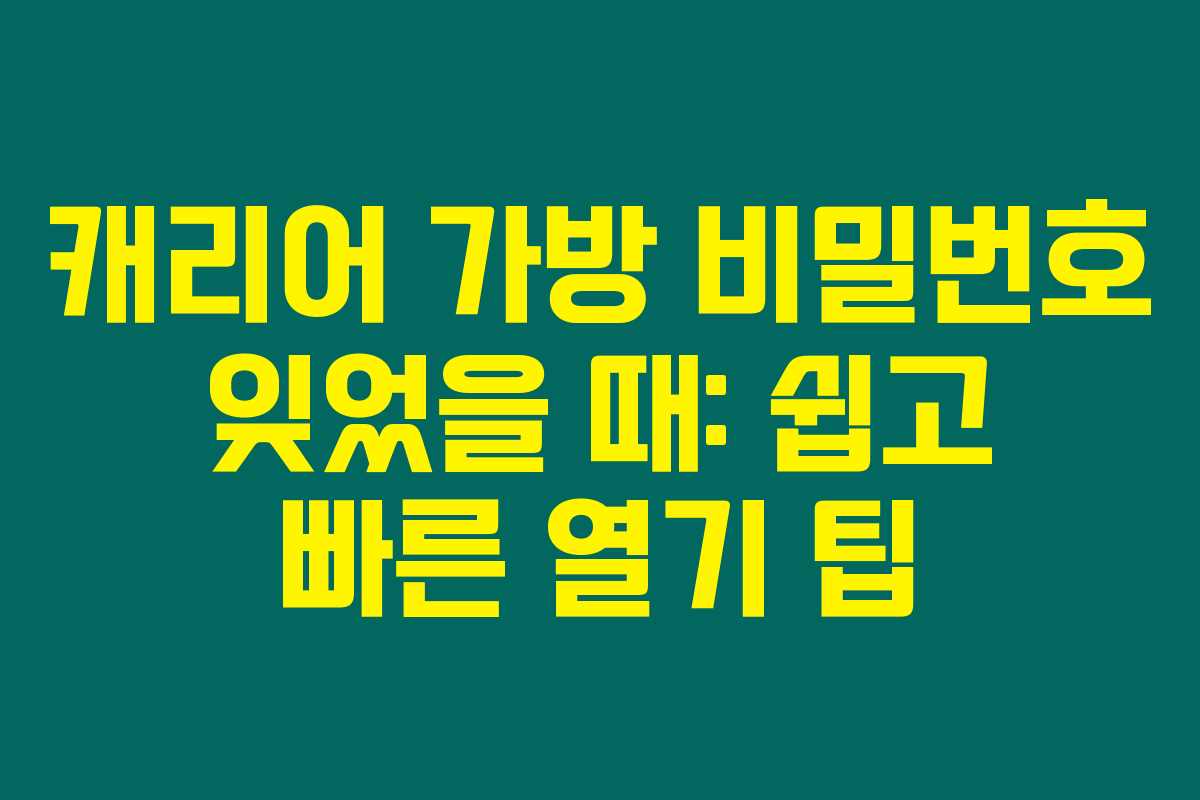 혹시 캐리어 가방 자물쇠가 잠겨서 걱정이신가요? 간단한 방법을 통해 많은 도움을 받을 수 있어요: