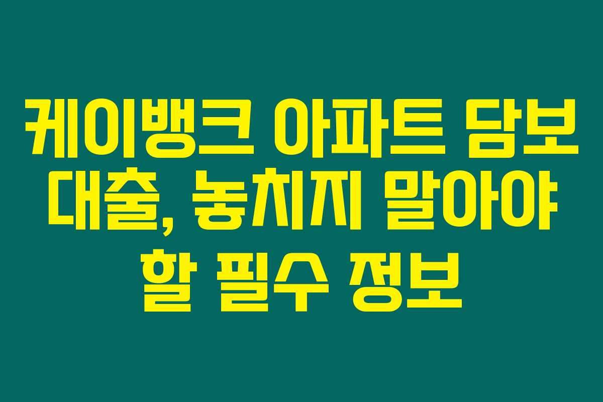 제가 알아본 바로는 케이뱅크의 아파트 담보 대출, 또는 주담대는 많은 분들이 높은 한도와 간편한 신청 절차 덕분에 큰 관심을 가지고 있답니다. 특히 바쁜 직장인이나 개인사업자에게는 대출 신청이 쉽고 신속하게 진행된다는 점에서 매력적인 옵션이에요. 아래를 읽어보시면 케이뱅크 주담대의 자격조건, 대상주택, 거절 사유, 금리와 한도에 대한 모든 정보를 확인할 수 있습니다.