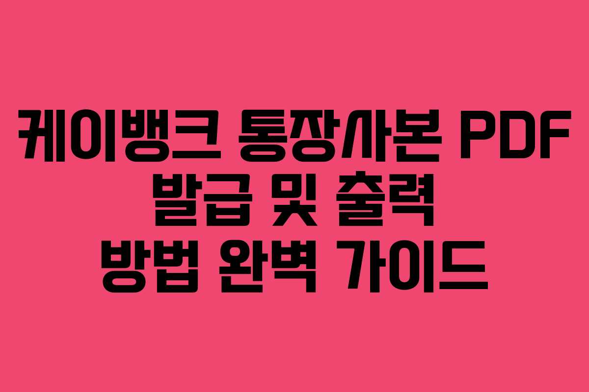 케이뱅크는 인터넷 뱅크 중 하나로 많은 이들이 이용하고 있는 대표적인 금융 서비스입니다. 특히, 통장사본 PDF를 발급받고 출력하는 방법을 알고 싶어하는 분들이 많습니다. 이번 글에서는 2026년 기준으로 케이뱅크의 통장사본을 어떻게 쉽게 발급받을 수 있는지에 대해 안내드리겠습니다.
