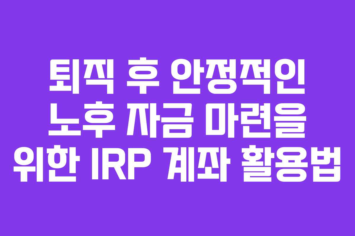 - IRP 계좌를 활용한 안정적인 노후 준비 전략