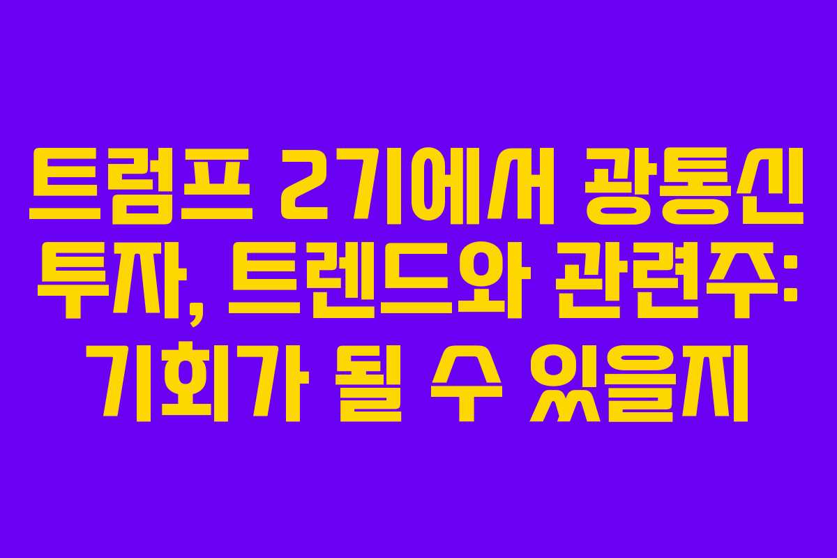 미국의 광통신 시장이 빠르게 성장하는 가운데, 트럼프 2기 정부의 인터넷 인프라 투자 확대와 BEAD 프로그램의 본격적인 실행이 이 흐름을 더욱 가속화할 것으로 보입니다. 광통신 기술은 케이블을 대체하며 새로운 인터넷 생태계를 창출하고 있어, 이에 따라 관련 기업들의 주가 상승 가능성도 높아지고 있습니다. 이번 글에서는 미국 광통신 시장의 현황과 국내 관련 기업들의 투자 전략에 대해 자세히 살펴보겠습니다.