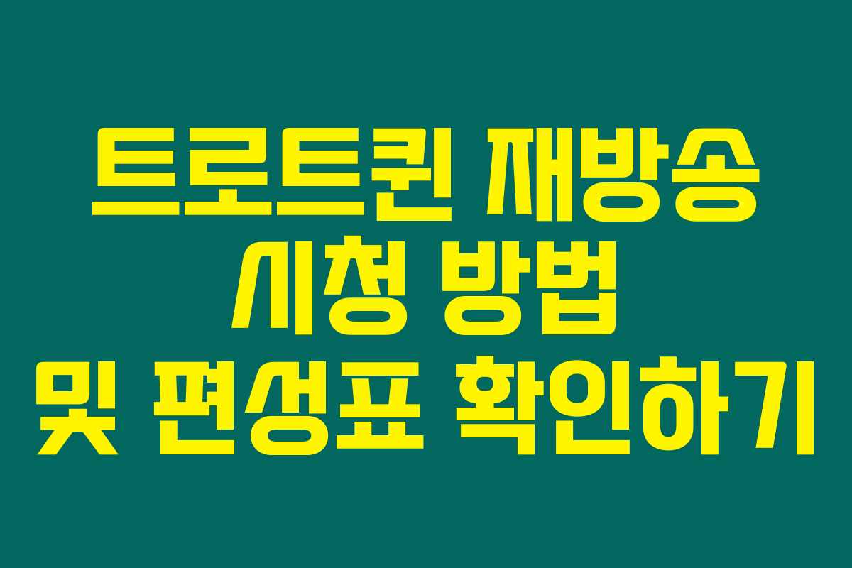 트로트가 요즘 정말 대세죠? 특히, 다양한 트로트 프로그램 중에서도 ‘트로트퀸’은 많은 사랑을 받고 있답니다. 하지만 본방송을 놓쳐서 아쉬워하는 분들을 위해 재방송 시청 방법과 편성표를 준비했어요. 트로트퀸을 놓친다면 꼭 확인해 보세요!