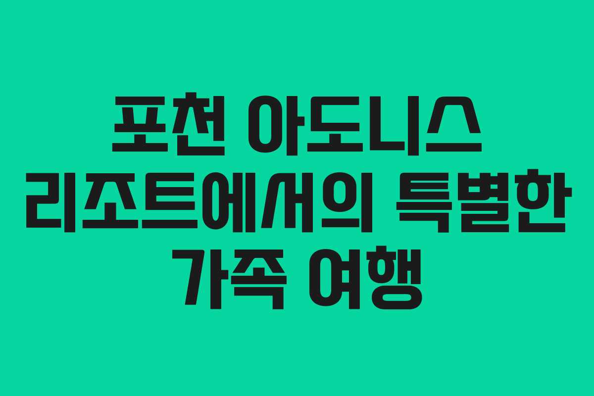 포천 아도니스 리조트는 가족 단위 여행객들에게 적합한 다양한 시설과 편의성을 제공하며, 잊지 못할 추억을 만들어 줄 수 있는 장소입니다. 편안한 숙박과 함께 즐거운 경험을 만끽할 수 있는 이곳에서 여러분의 다음 가족 여행을 계획해 보세요.