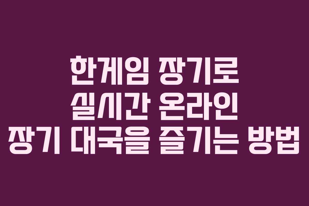 한게임 장기로 실시간 온라인 장기 대국을 즐기는 방법