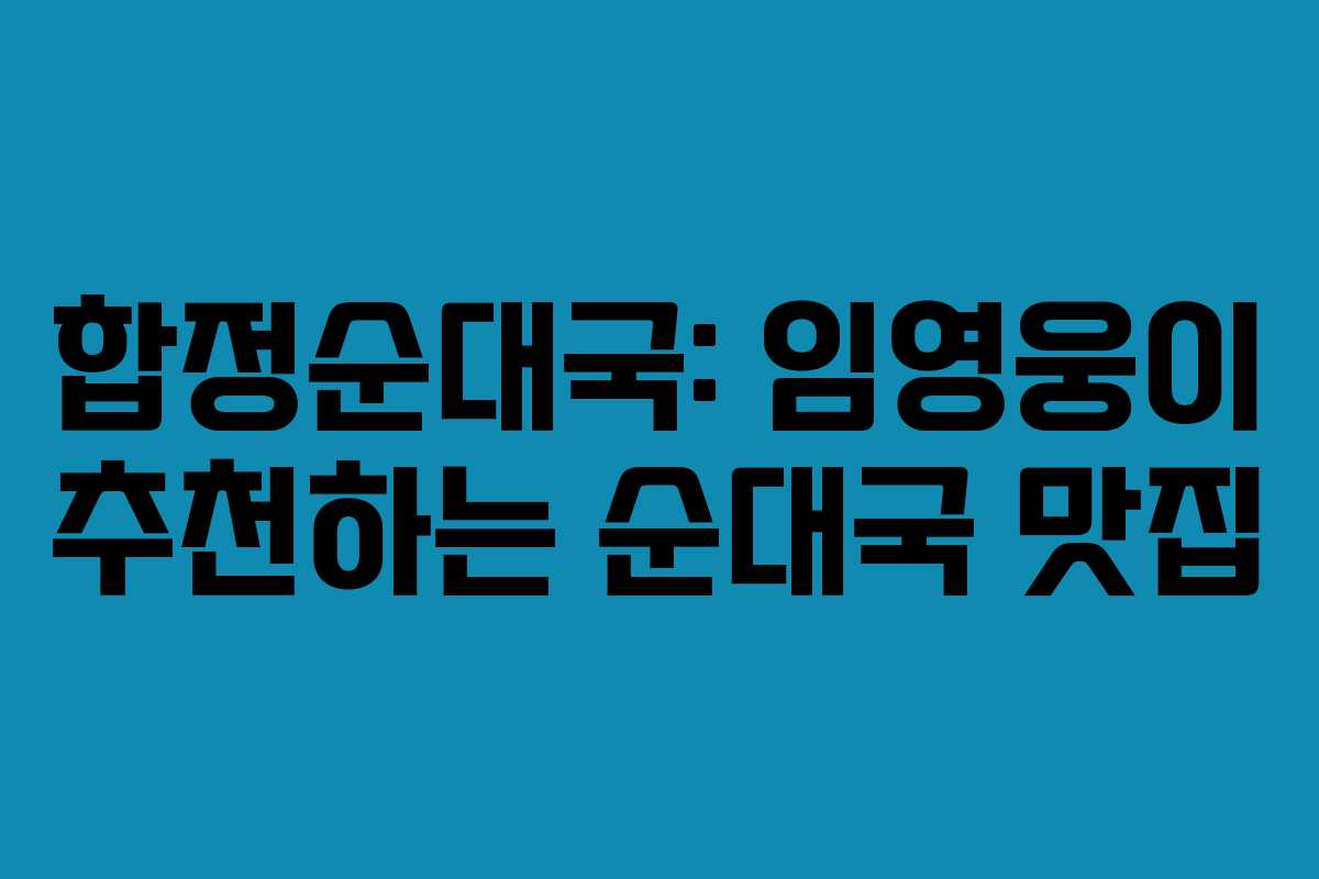 합정순대국: 임영웅이 추천하는 순대국 맛집