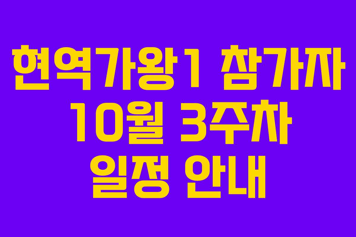 이와 같이 현역가왕1 참가자들은 2026년 10월 3주차 동안 다양한 활동을 통해 팬들과 소통하고, 각 지역에서의 행사에 참여하며 활발한 활동을 이어갈 것입니다. 팬 여러분의 많은 관심과 응원 부탁드립니다.