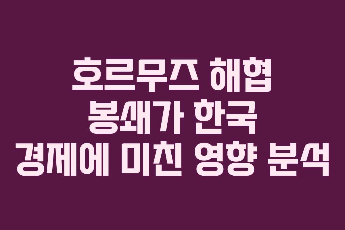 호르무즈 해협 봉쇄가 한국 경제에 미친 영향 분석