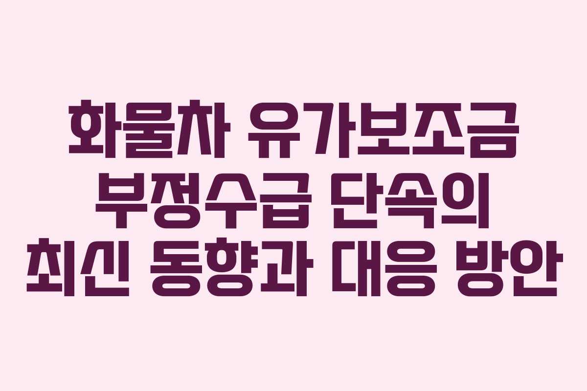화물차 유가보조금 부정수급을 방지하기 위한 실전 가이드