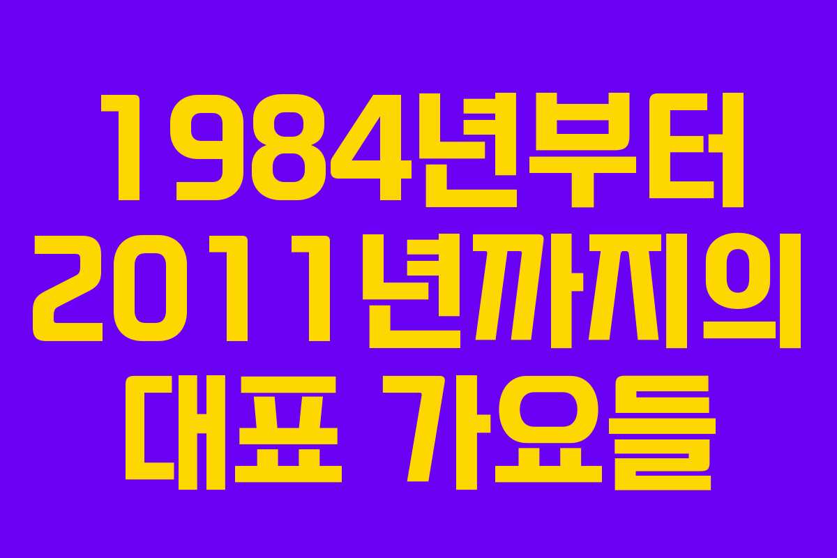 이처럼 1984년부터 2011년까지의 한국 가요는 시대별로 다양한 감정을 담아내며 많은 사람들에게 기억되고 있습니다. 이러한 노래들은 지금도 많은 이들에게 위로와 감동을 주며, 우리의 마음속에 오래도록 남아 있을 것입니다.