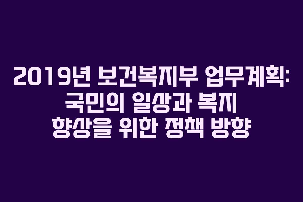 2019년 보건복지부 업무계획: 국민의 일상과 복지 향상을 위한 정책 방향