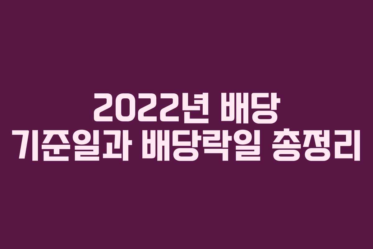 2022년의 주식 거래 일정을 정리하면서 배당 기준일과 배당락일을 살펴보겠습니다. 이 정보는 주식 투자자들에게 중요한 요소로, 배당금을 받기 위해 반드시 알아두어야 합니다.
