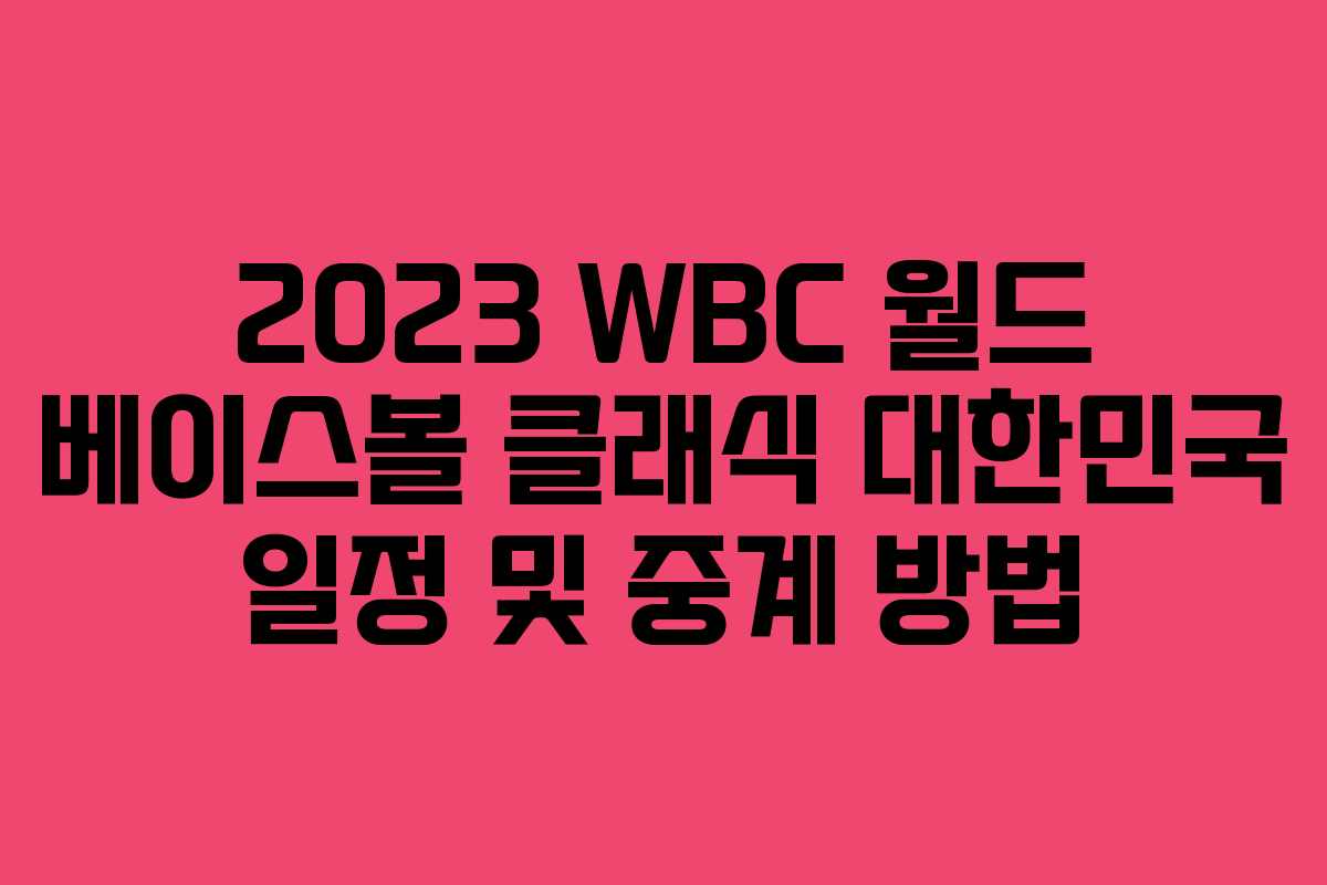 2023 WBC(월드 베이스볼 클래식)가 곧 시작됩니다. 야구 팬이라면 이 대회를 놓치지 않기 위해 중계 정보를 찾고 계실 텐데요, 이번 글에서는 WBC의 일정과 무료로 경기를 시청할 수 있는 방법을 안내해 드리겠습니다.