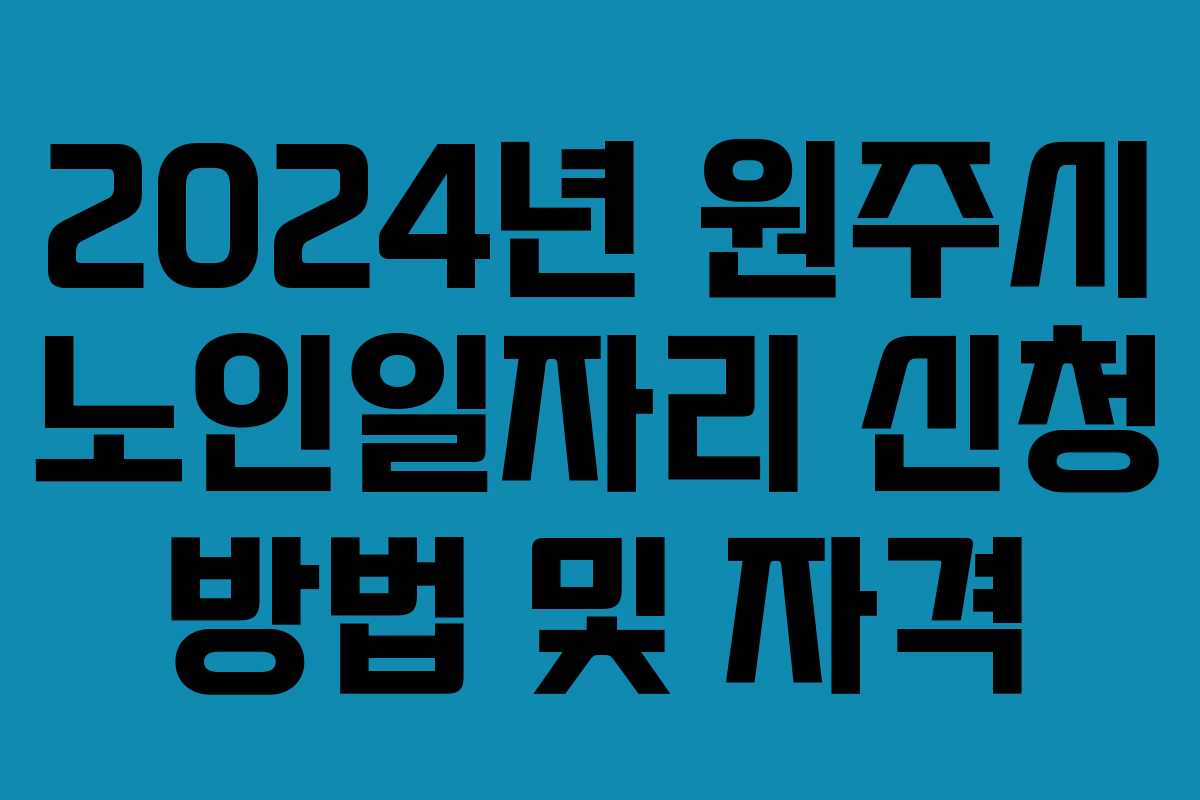 2024년 원주시 노인일자리 신청 방법 및 자격