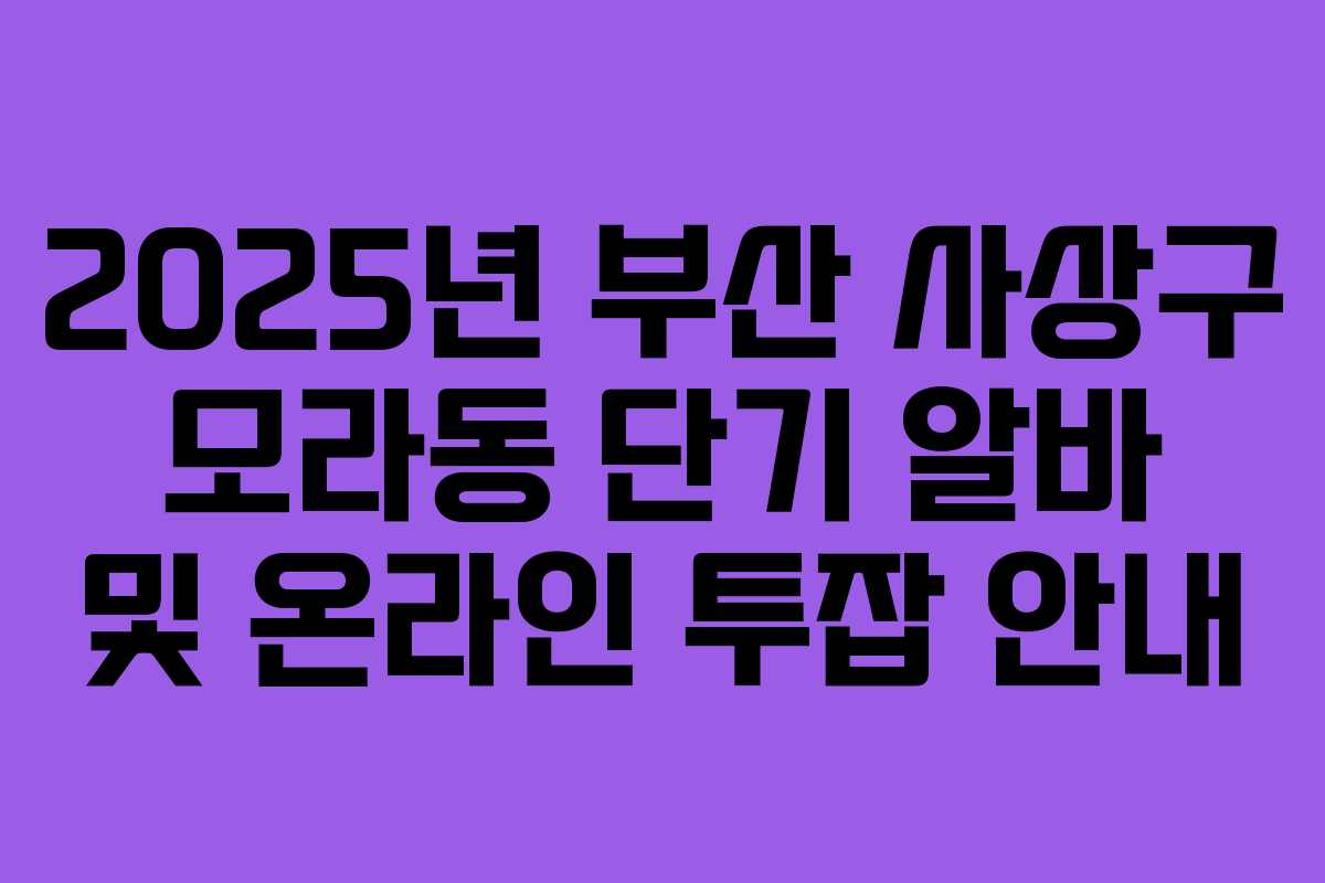 부산 사상구 모라동에서는 2025년 여성 주부와 대학생을 위한 다양한 단기 알바 및 온라인 투잡 기회를 제공합니다. 이 정보는 생계를 돕고자 하는 분들에게 유용하며, 여러 사람의 삶의 질을 높이는 데 기여할 것입니다.