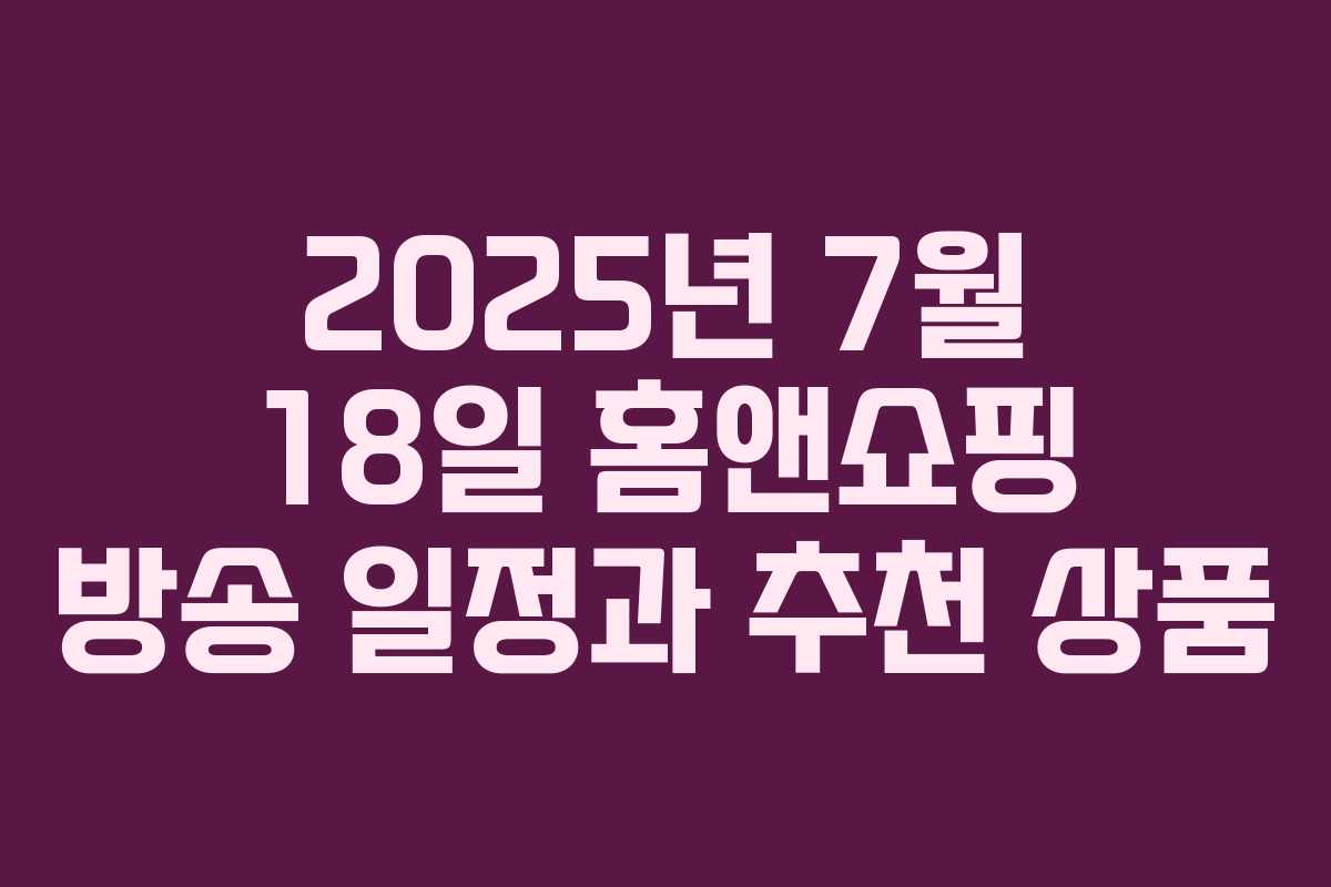 2025년 7월 18일 홈앤쇼핑 방송 일정에 따라 원하는 상품을 체크하고, 방송 중에 알림을 설정하여 놓치지 않는 것이 중요합니다. 이 날 방송되는 다양한 상품은 소비자들에게 많은 혜택을 제공할 것입니다.