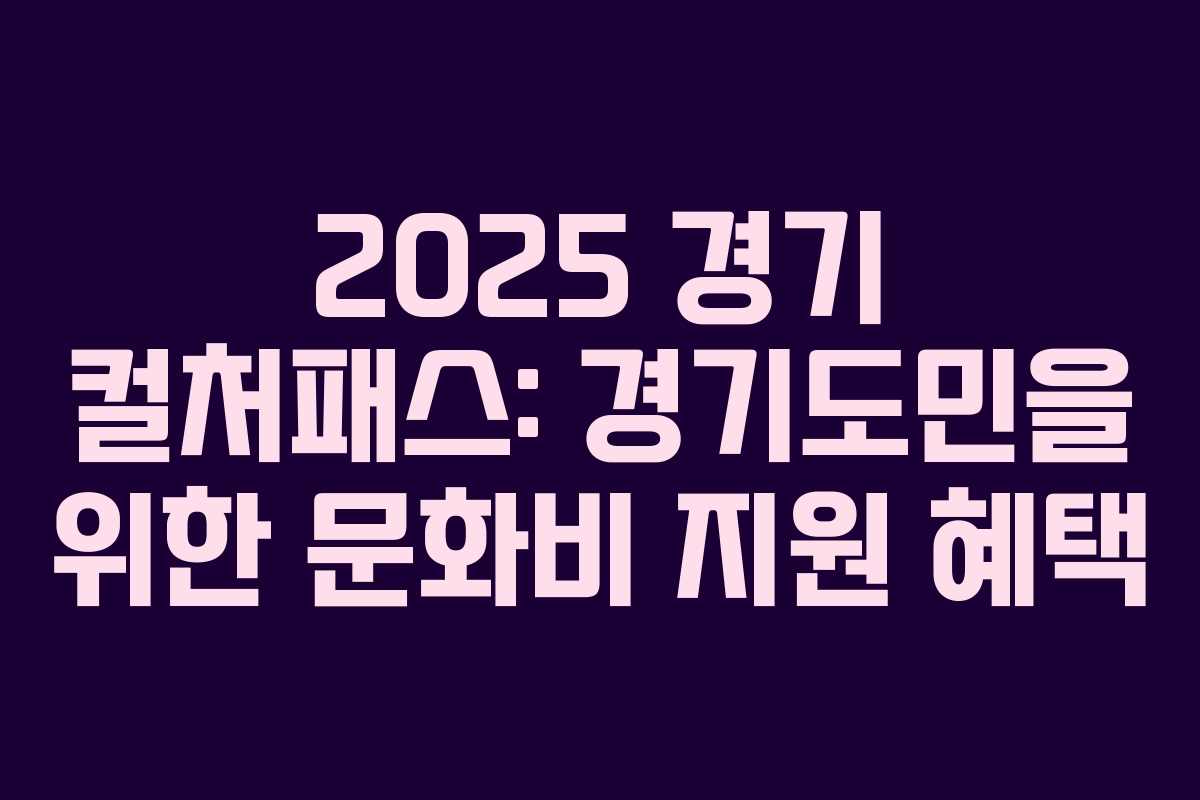 경기도민을 위한 반가운 소식이 있습니다. 2025년부터 시행되는 ‘경기 컬처패스’를 통해 연간 15만 원의 문화생활비를 지원받을 수 있습니다. 신청 방법과 사용처에 대한 정보를 자세히 알아보겠습니다.