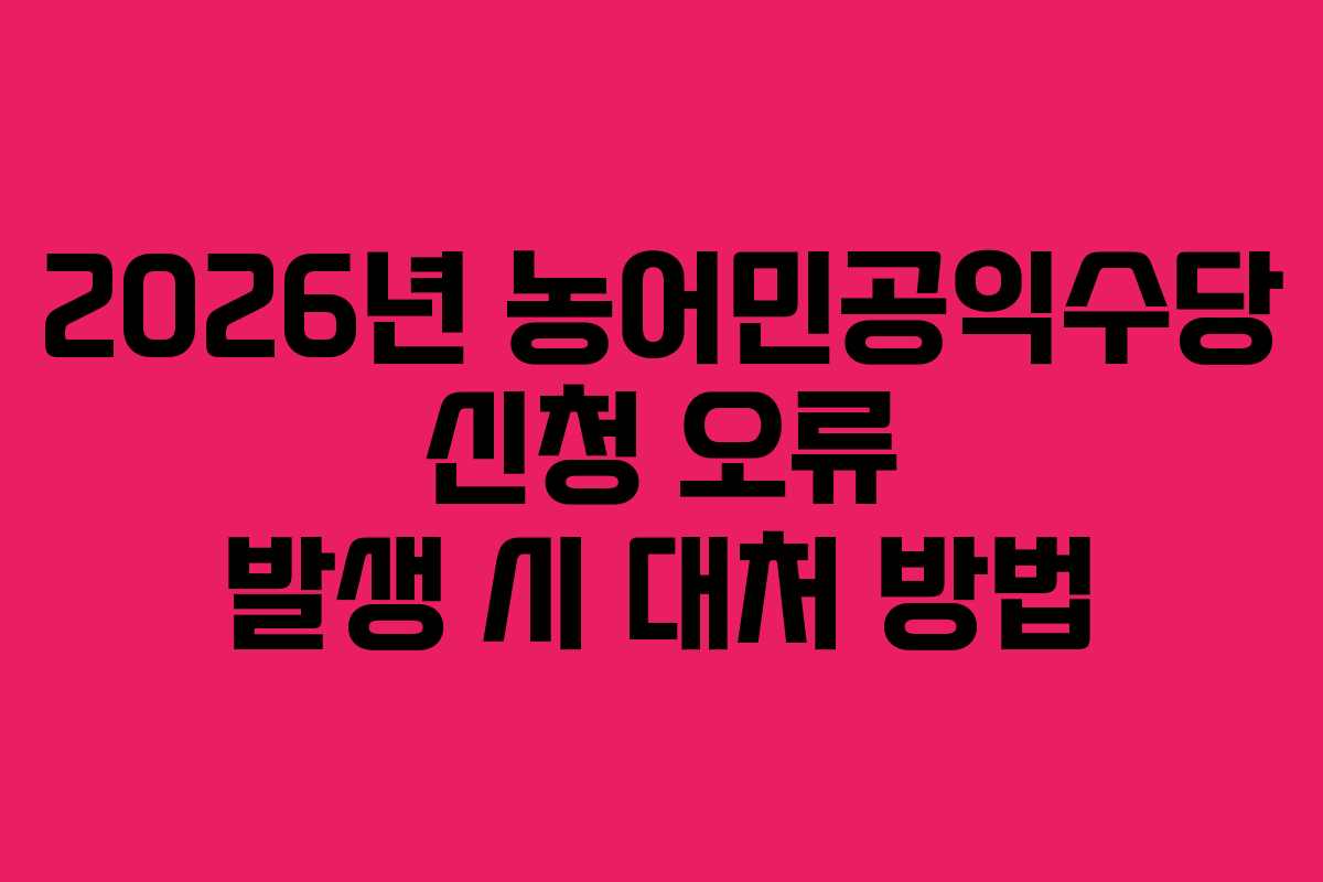 2026년이 밝으면서 농어민공익수당 신청의 시기가 다가왔습니다. 농민 수당은 농촌의 공익적 가치를 인정하고, 농어업인의 안정적인 경영을 지원하는 제도로, 매년 많은 농민에게 실질적인 지원을 제공합니다. 하지만, 신청 과정에서 예상치 못한 오류가 발생할 수 있습니다. 제가 경험한 내용을 바탕으로, 오류가 발생할 경우 대처 방법을 상세히 소개하겠습니다.