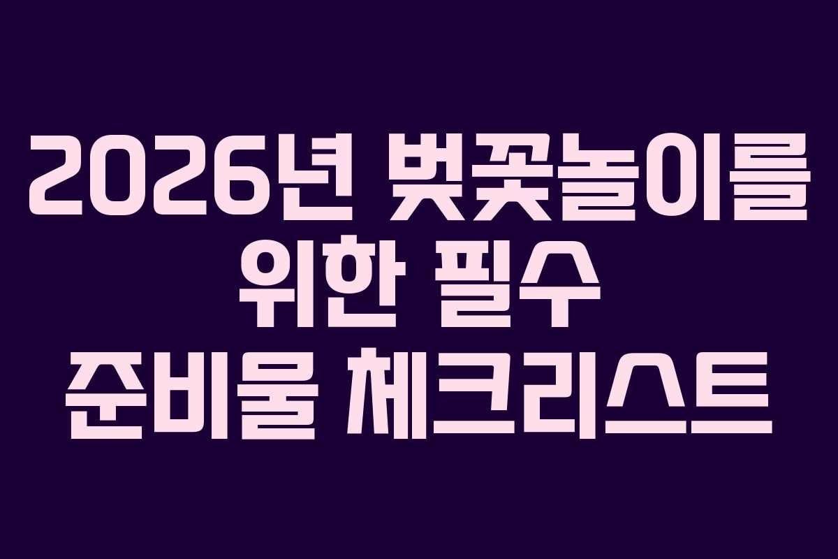 2026년의 봄, 따사로운 햇살과 함께 벚꽃이 만개하는 시기가 다가옵니다. 이 시기에 벚꽃놀이를 계획하고 있다면, 꼭 챙겨야 할 준비물들을 미리 점검하는 것이 중요합니다. 이번 글에서는 벚꽃놀이에 필요한 필수 아이템들을 소개하고, 보다 즐겁고 안전한 시간을 보낼 수 있도록 돕겠습니다.