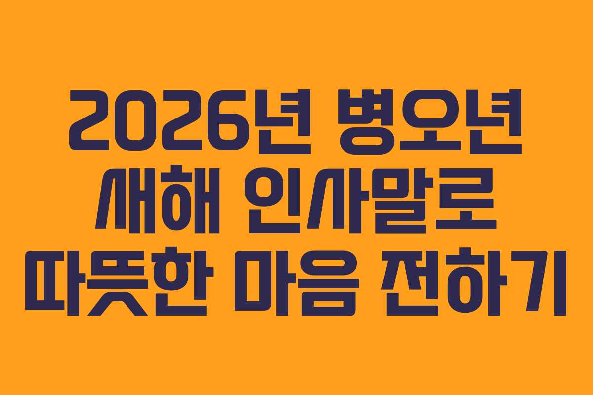 2026년 병오년에는 따뜻한 인사말을 통해 서로의 마음을 더욱 가까이 할 수 있습니다. 인사말 하나로도 상대방에게 긍정적인 영향을 미칠 수 있으니, 상황에 맞는 문구로 진심을 전해보세요. 이러한 작은 노력이 소중한 관계를 더욱 깊게 만들어줄 것입니다. 새해 복 많이 받으세요.